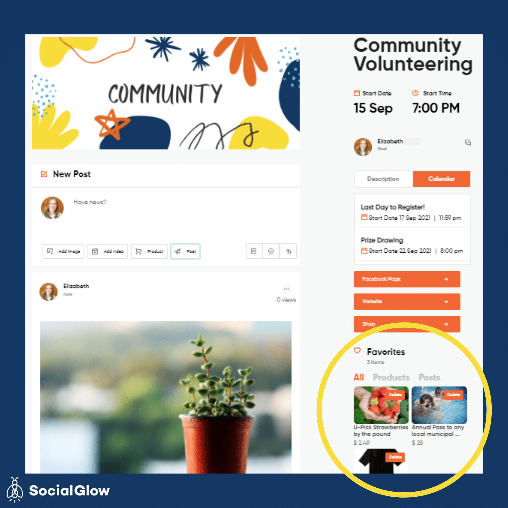 Create a variety of posts for your Event like Picture posts, Video posts, and Product posts, which will show a price and allow guests to save to their Favorites list!